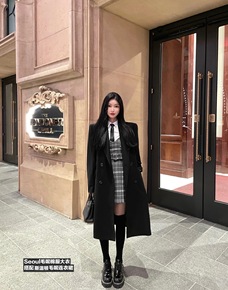 毛呢外套女中长款冬装2021年新款小个子双面羊绒赫...