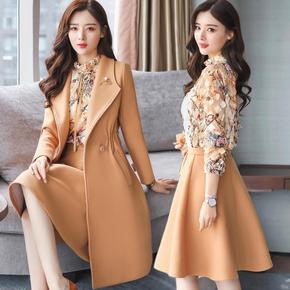 2021秋冬新款韩版毛呢连衣裙套装气质女装时尚冬装...