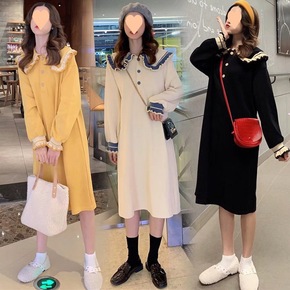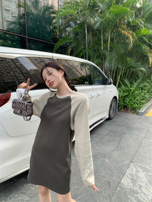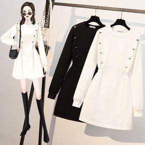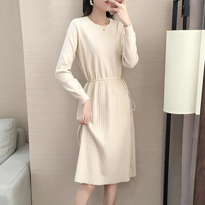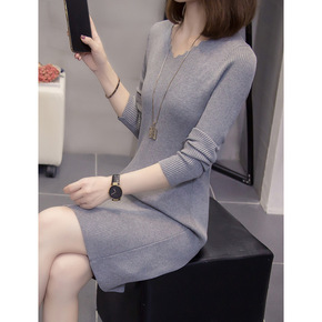 韩国chic秋冬慵懒宽松大码圆领套头针织裙长款打底...