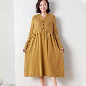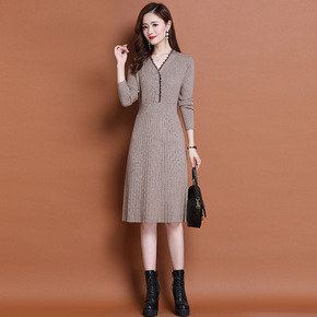 长袖羊毛针织连衣裙女秋冬装宽松大码长款毛衣裙子洋气...