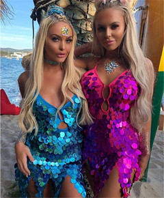 亚马逊速卖通2018爆款性感珠片不规则连衣裙夜店演...