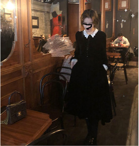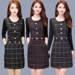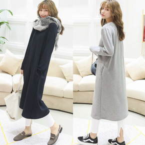 秋冬韩版女装圆领长裙长袖连衣裙加绒加厚打底裙宽松大...