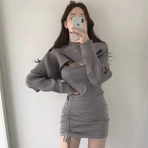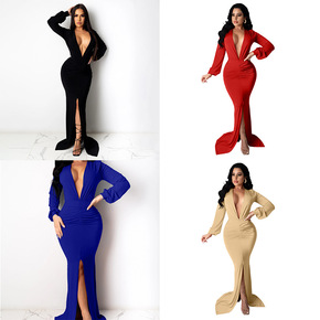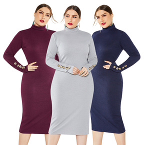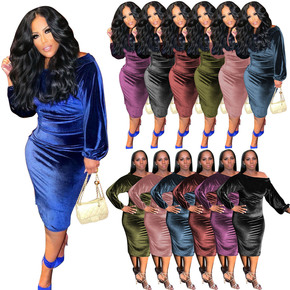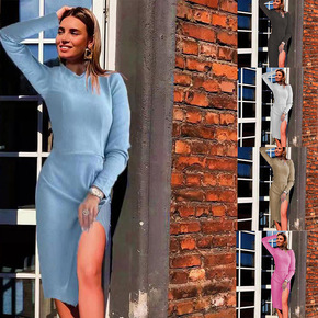 2021秋冬新款圆领长袖性感修身包臀连衣裙速卖通圣...