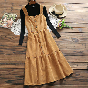 2021年秋冬装 日系森女系小清新背带裙复古灯芯绒...