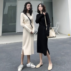 长款毛衣女秋冬2019新款女装中长款毛衣裙过膝修身...