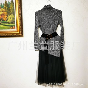 QY5038 欧美女装一字领亮片虎头两边开叉连衣裙...