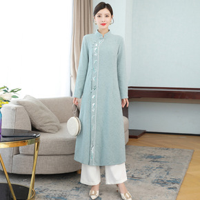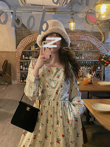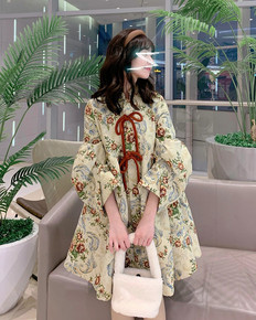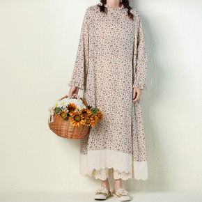 2022新款秋装宽松版连衣裙亚麻棉印花裙子文艺风休...