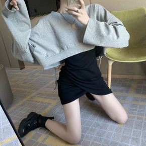 秋冬季设计感连衣裙套装2021新款露背短款卫衣包臀...