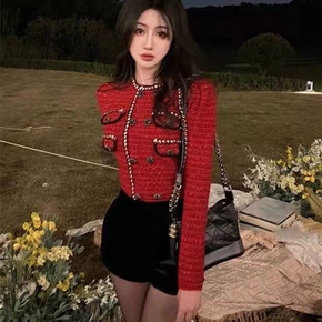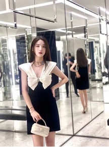 现货 秋冬slp圣诞蝴蝶结绒面肩头垂饰水钻腰部收腰...