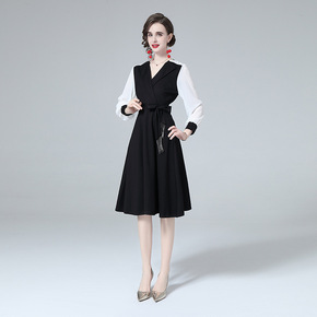大码女装胖mm秋装新款洋气显瘦遮肚减龄连衣裙法式初...