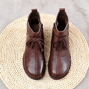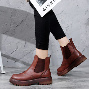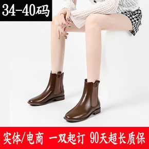 短靴女2021秋冬新款真皮切尔西靴女英伦风粗跟文艺...