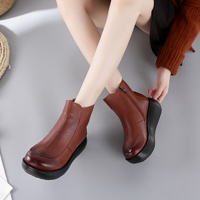 2021秋冬新款休闲女鞋坡跟靴子女高跟厚底内增高短...