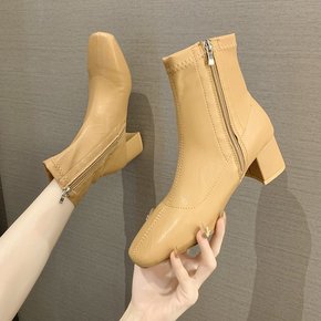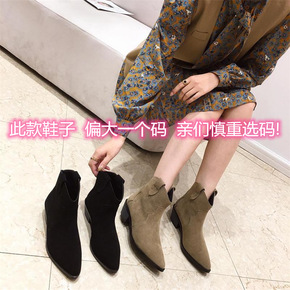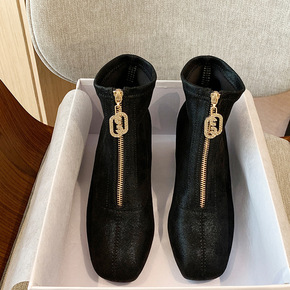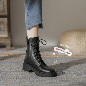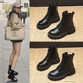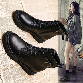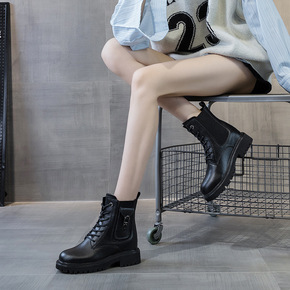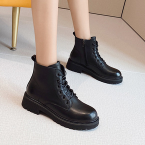 马丁靴女2020秋冬新款侧拉链女靴韩版低筒裸靴方头...