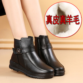 妈妈鞋棉鞋女冬季加绒中老年鞋软底防滑老人皮鞋羊毛保...
