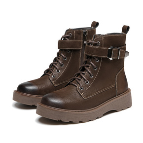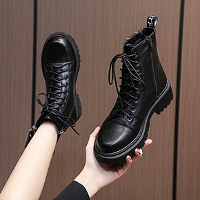 亚马逊2021秋冬新款欧美大码马丁靴女平跟圆头低筒...