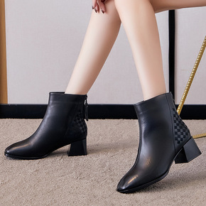 瑞百丽拉2020秋冬季新品粗跟圆头中筒靴女大码短靴...