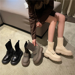 篙版本mona同款JW BV厚底切尔西靴女冬新款烟...