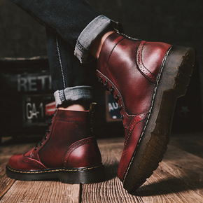 跨境男鞋2019秋冬季英伦高帮马丁靴时尚百搭工装靴...