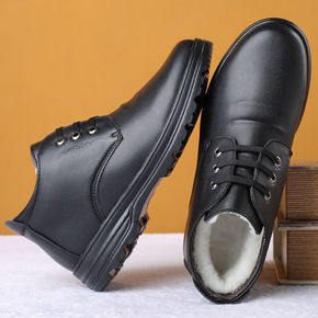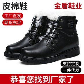 卡奥 【100%全绒棉】男皮鞋棉鞋秋冬高帮加绒保暖...