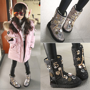 秋冬季儿童雪地靴女童短靴加绒男童棉鞋高帮通用加厚马...