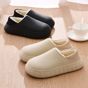 越行狼2021冬季毛绒棉拖鞋厚底包跟保暖情侣居家雪...