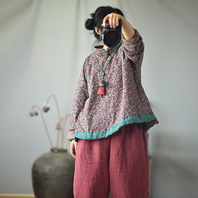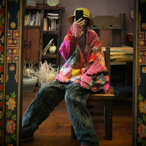 2022落古泥个性手工拼布上下两穿夹棉棉衣棉服女外...
