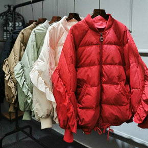 秋冬木耳边羽绒服女短款冬装新款时尚红色结婚孕妇网红...
