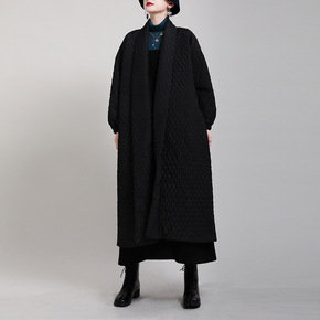 2021秋冬新款山本暗黑设计感菱格棉衣外套后开叉纽...
