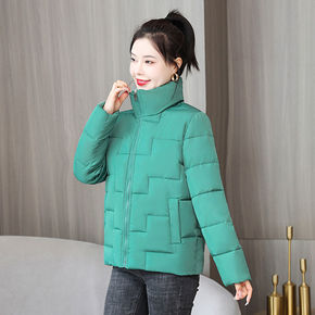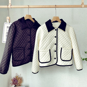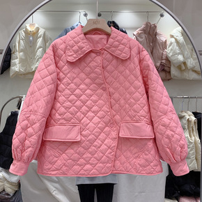 韩版小香风菱形格棉服女2021冬装新品显瘦单排扣双...