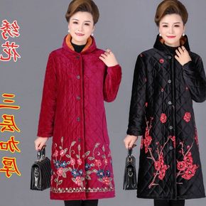 冬季女装棉袄加厚加绒妈妈保暖罩衣中长款金丝绒棉服加...