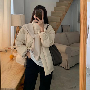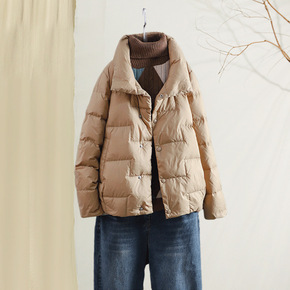2022秋冬新款羽绒服女短款薄款宽松休闲翻领保暖白...