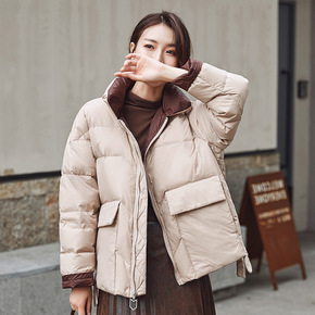 撞色立领短款羽绒服女2022新款白鸭绒保暖加厚女士...
