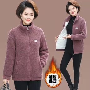 妈妈冬装外套棉衣中年女装加绒加厚摇粒绒棉服中老年女...