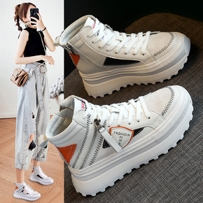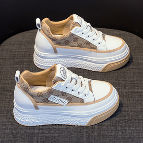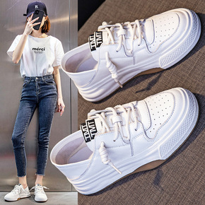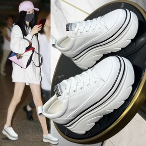 内增高小白鞋女真皮2022秋季新款厚底休闲松糕鞋百...