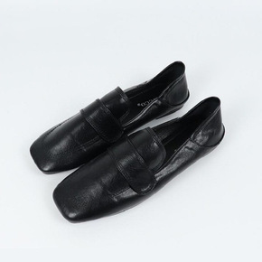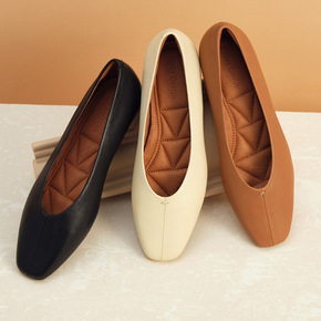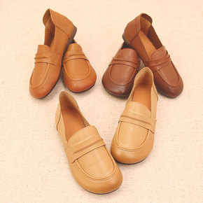 2022早秋新款复古真皮女鞋头层牛皮圆头平底单鞋休...
