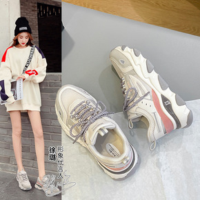 2489INS厚底欧美运动鞋女原宿复古老爹松糕鞋休...