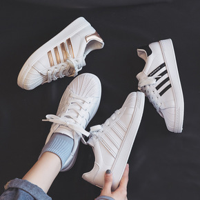 秋冬小白鞋女真皮加绒白色板鞋经典系带平底单鞋学生鞋...