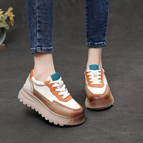 吉树2022秋鞋新款头层牛皮厚底休闲系带女鞋真皮时...
