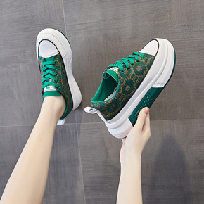 厚底松糕鞋牛皮浅口单鞋春秋款印花淑女坡跟女鞋一件代...