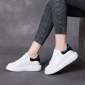 麦昆真皮小白鞋女2021夏季新款百搭厚底内增高松糕...