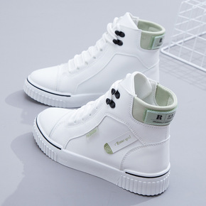 白色帆布马丁靴女夏季薄款透气厚底增高绿底2021新...