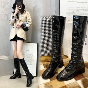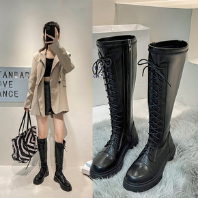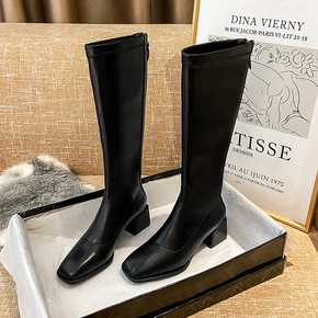 欧美风2021春季新款粗跟高跟靴长筒靴女靴大码女鞋...