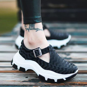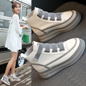 风格:休闲 流行元素:内增高、交叉绑带、皮革拼接、拼色、松糕跟、色拼接、防水台 鞋头形状:圆...