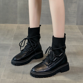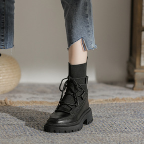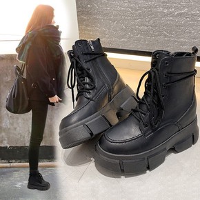 马丁靴女2021秋冬季新款英伦风厚底女靴中跟粗跟系...