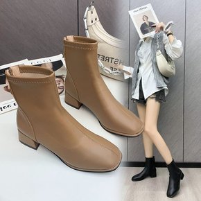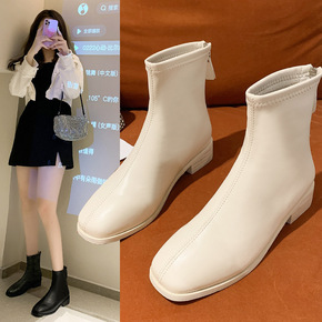 2021圆头成年女马丁靴现货中筒前拉链女款春秋黑色...