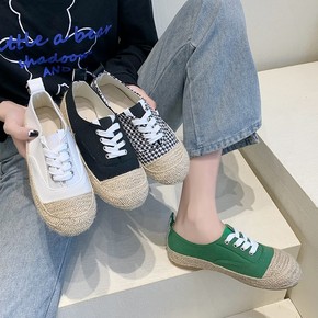 草编渔夫鞋女2021秋季新款韩版休闲平底帆布鞋大码...