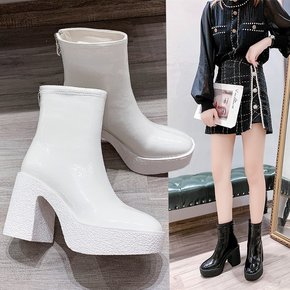 跨境2021秋冬新款英伦风白色口袋包包靴厚底短靴女...