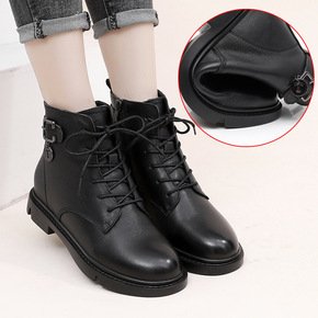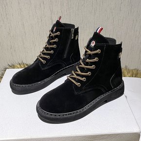 2021秋季新款真皮透气短靴女平底侧拉链马丁靴女英...