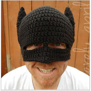 毛线帽 黑色超人帽 欧美蝙蝠侠眼睛帽 手工黑色尖耳...