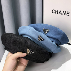个性复古牛仔拼接八角帽子女春夏休闲百搭报童帽街拍潮...